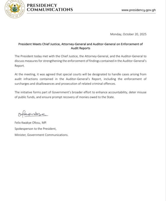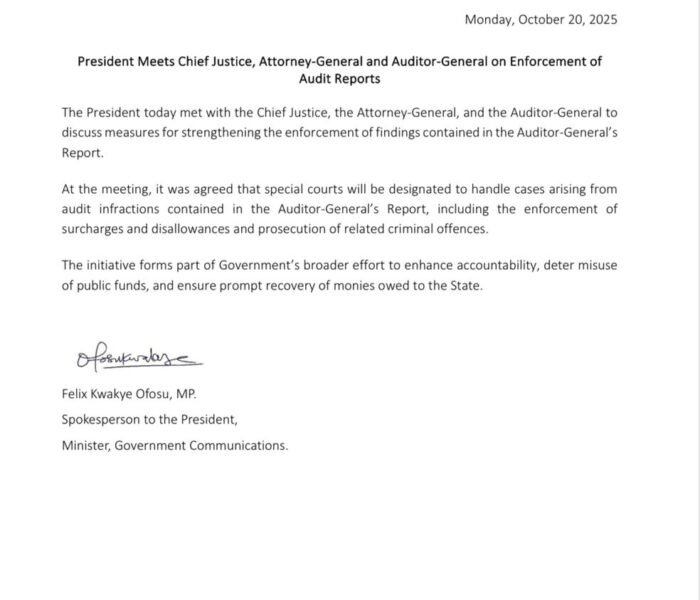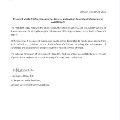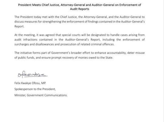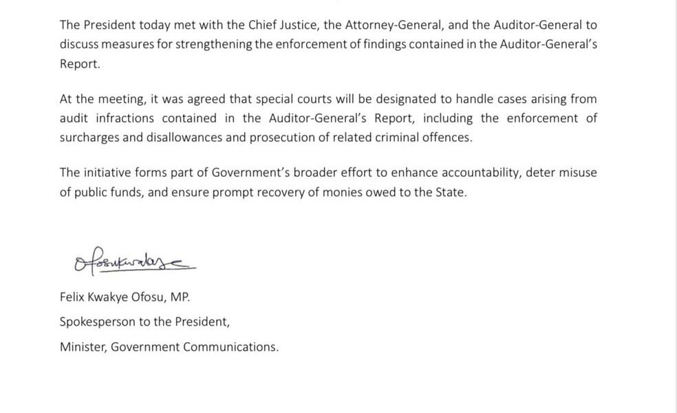The President has held a crucial meeting with the Chief Justice, the Attorney-General, and the Auditor-General to discuss ways of.