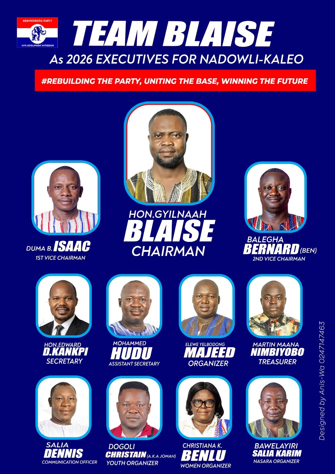 Team Blaise Campaign is anchored on unity, grassroots empowerment, and strategic mobilization, as he positions himself as the leader capable of steering the NPP toward electoral recovery and long-term growth in the Nadowli-Kaleo Constituency.