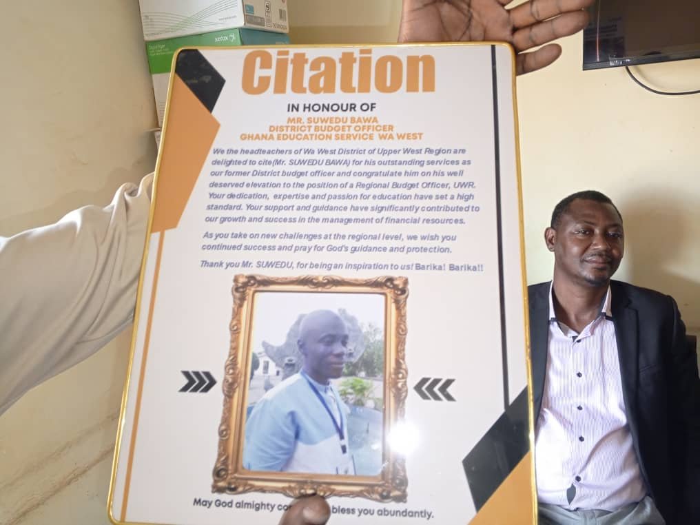 Concerned Headteachers within the Wa West Education Directorate have honoured the outgoing District Budget Officer of the Ghana Education Service (GES) for his outstanding contribution to educational development in the district.